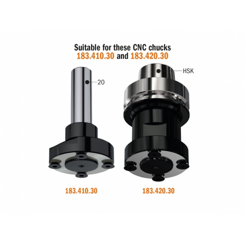 • použiteľné v v CNC stojoch s unášacím tŕňom C183.410.30 stoka 20mm, alebo upínaním HSK C183.420.30